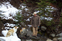 It was about 8:00 pm when we arrived at our campsite near the trailhead of the South Crow Lakes. The skies were cloudy and thunder storms were predicted. We set up camp as fast as possible. We had the tent set up and the bed and sleeping bags situated. We started a fire and cooked hot dogs, but before we could finish eating the storm hit. Lightning flashed and the thunder crashed around us. We ran for the truck and leaped inside. Richard called Charity, she jumped in. We called Daisy but she hid in the bed of the truck. We tried dragging and pulling her but she would not come into the cab with us. The lightning was so close we had to get into the truck without her. Torrents of rain poured down and lightning flashed around us. Richard, Charity and I were warm, dry and safe.